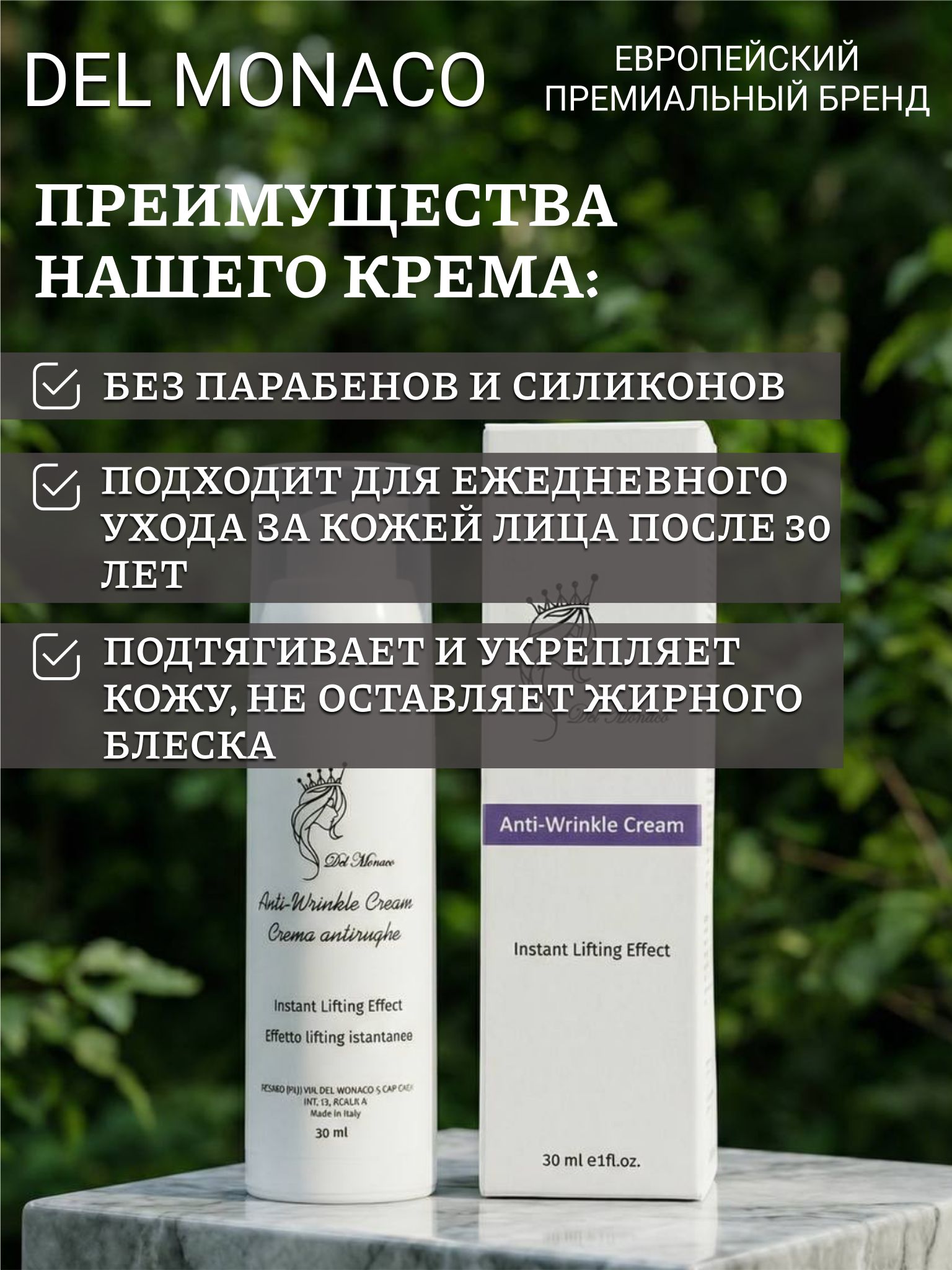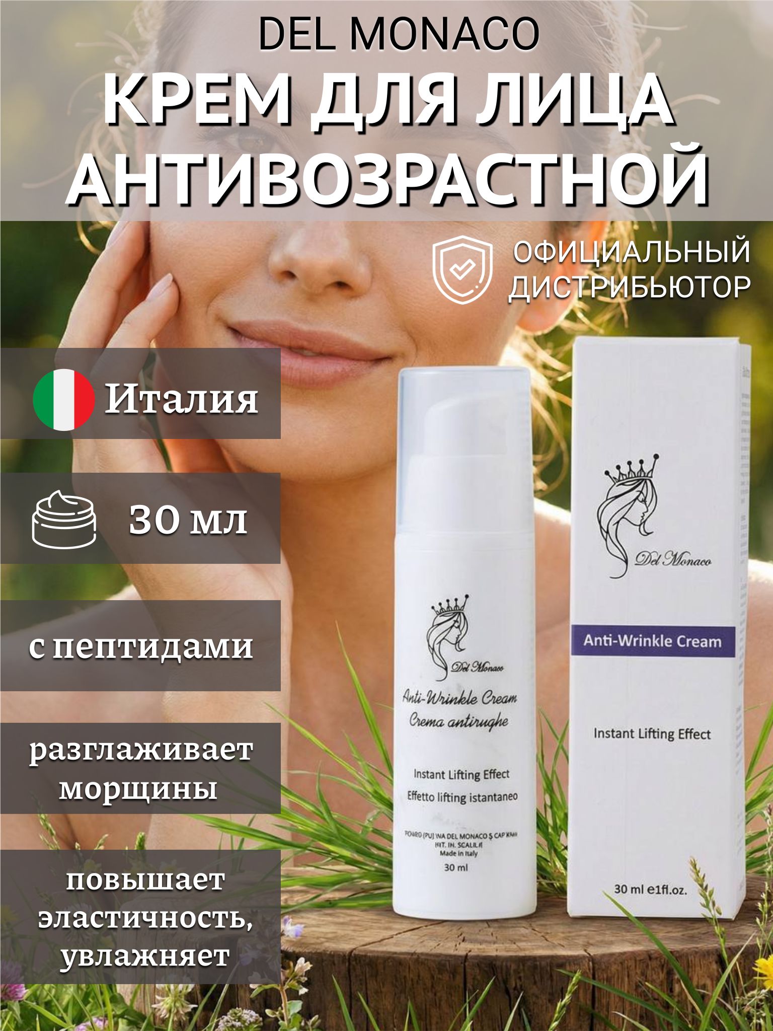 Крем для лица от премиум бренда Del Monaco — уход из Италии, созданный для комплексной работы с возрастными изменениями кожи. Улучшает эластичность, разглаживает морщины, обеспечивает глубокое увлажнение и придает естественное сияние коже. Крем увлажняющий для лица объединяет европейский подход к косметологии, современные исследования и силу растительных компонентов.